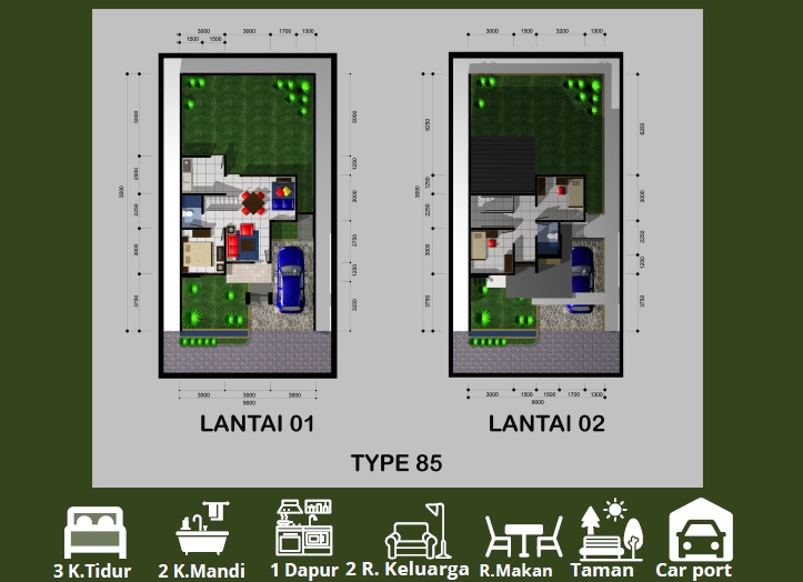 Hunian berkonsep Minimalis, Tropis, Luxury dengan suasana tenang dan damai, Bebas Polusi, lingkungan sekitar aman dan ramah, dan dengan kualitas bangunan terbaik dan pilihan material terbaik di kelasnya.